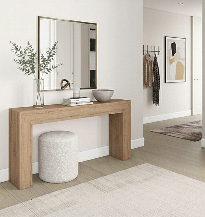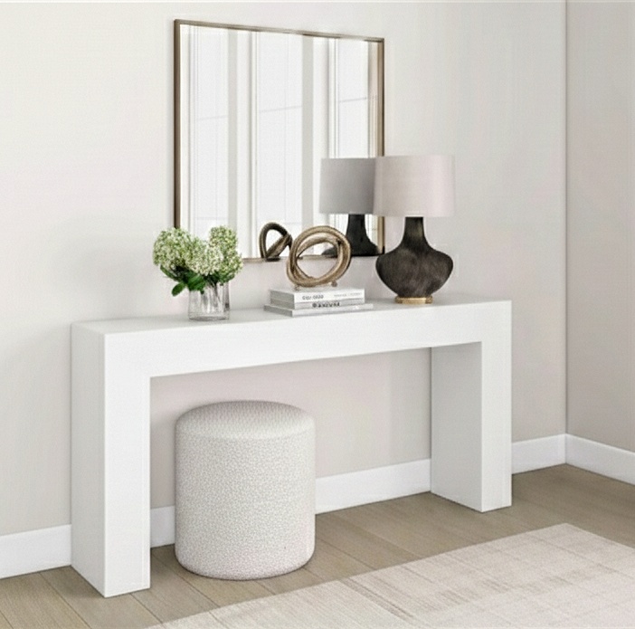 این کنسول با طراحی مینیمال و ساختار ساده، از امدیاف درجه یک تولید شده که دوام بالا و ظاهر یکدست و شیکی به آن بخشیده. بهدلیل ابعاد مناسب و طراحی کاربردی، این کنسول گزینهای عالی برای استفاده در فضاهای مختلف خانه است؛ از راهرو و ورودی گرفته تا پشت کاناپه یا حتی گوشهای از اتاق خواب. سطح آن برای چیدمان اکسسوریهای دکوراتیو، آینه، آباژور یا گلدان بسیار مناسب است و میتواند بهعنوان نقطهی کانونی در هر فضا بدرخشد. (جهت خرید با ابعاد سفارشی، به جز ابعاد موجود در سایت به دایرکت یا واتساپ مراجعه کنید)